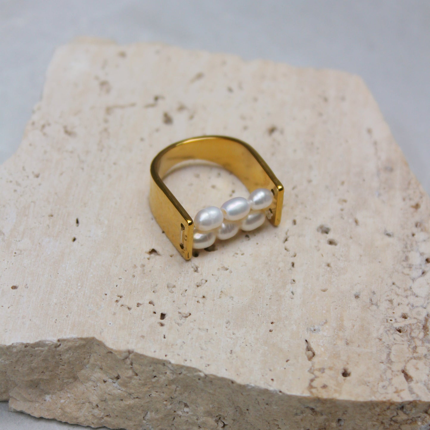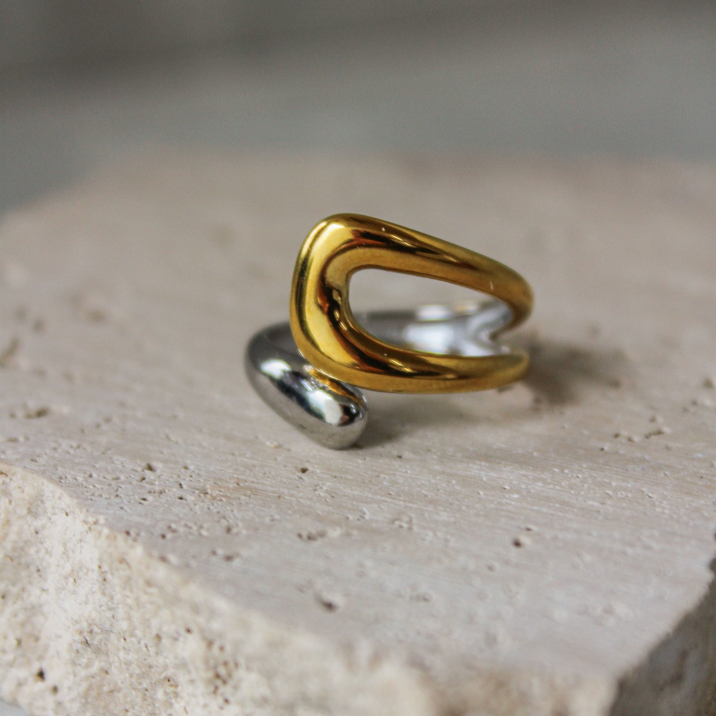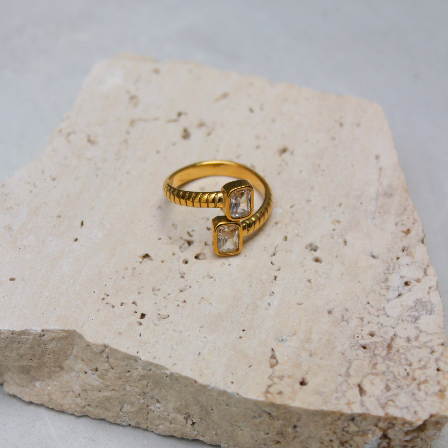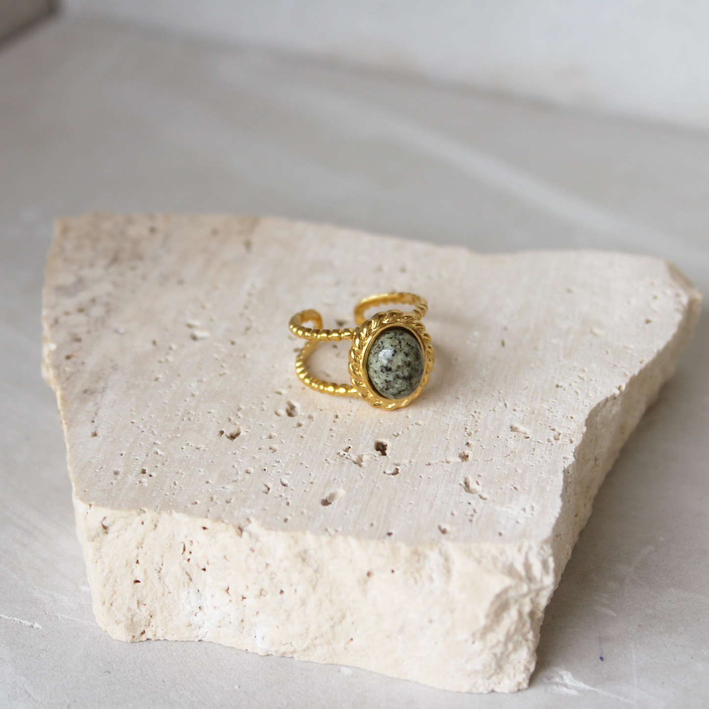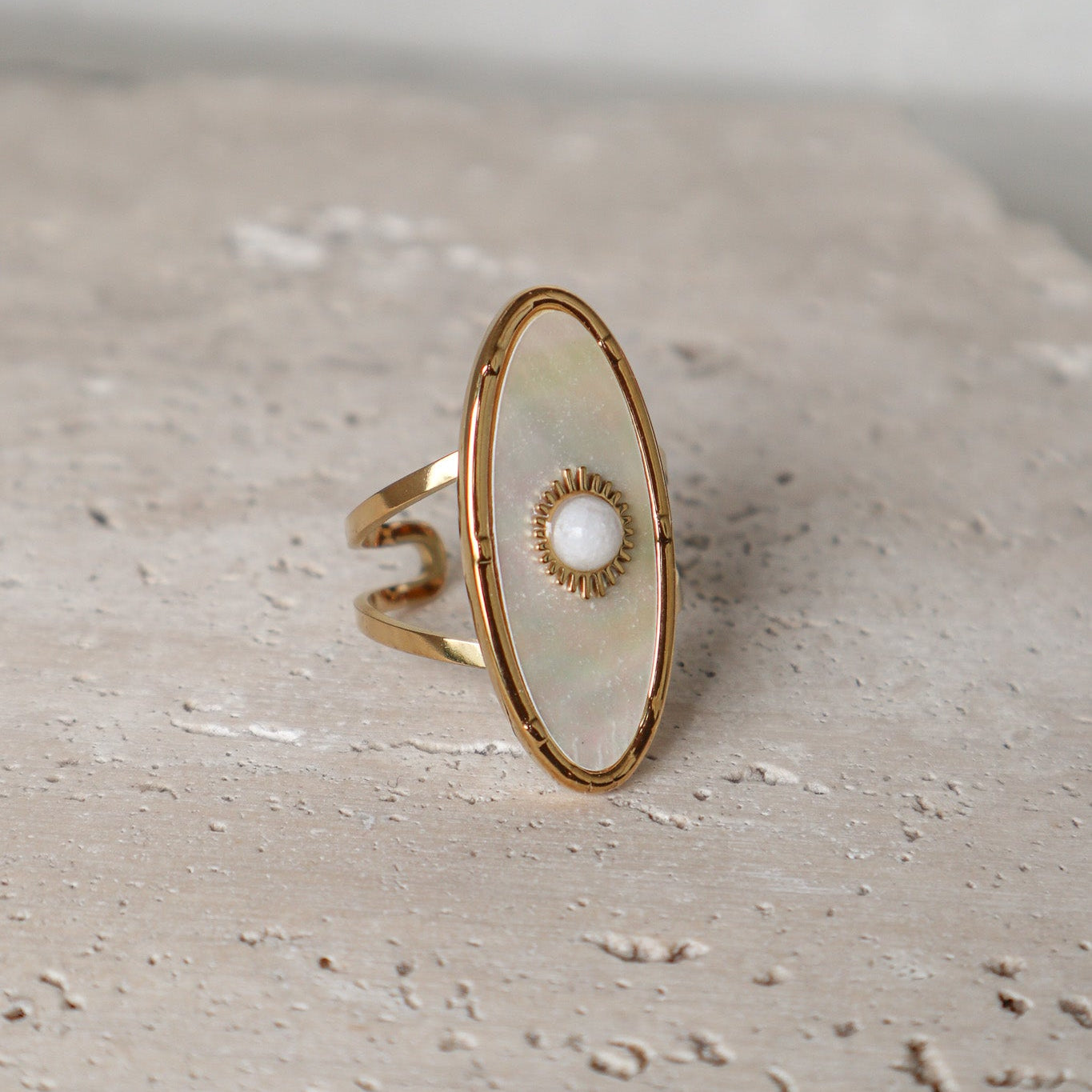 Añadir Anillo Doble Piedra Ovalada Blanca al carrito