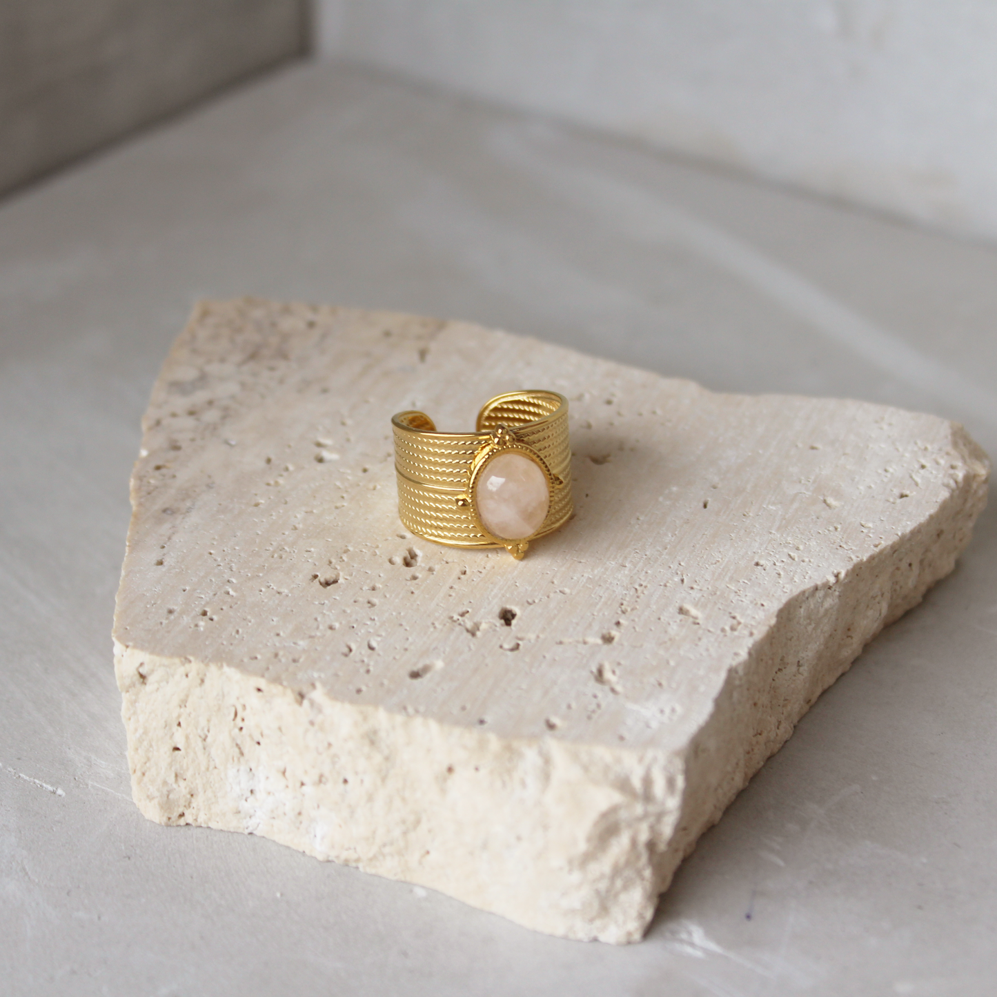 Añadir Anillo Grueso Irregular Piedra Natural Rosa al carrito