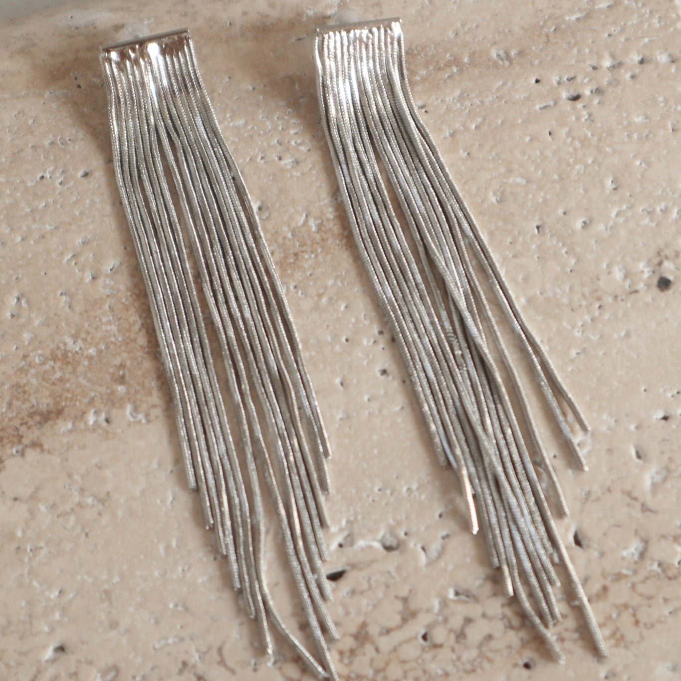 Añadir Aretes Largos Tiras Plateadas al carrito