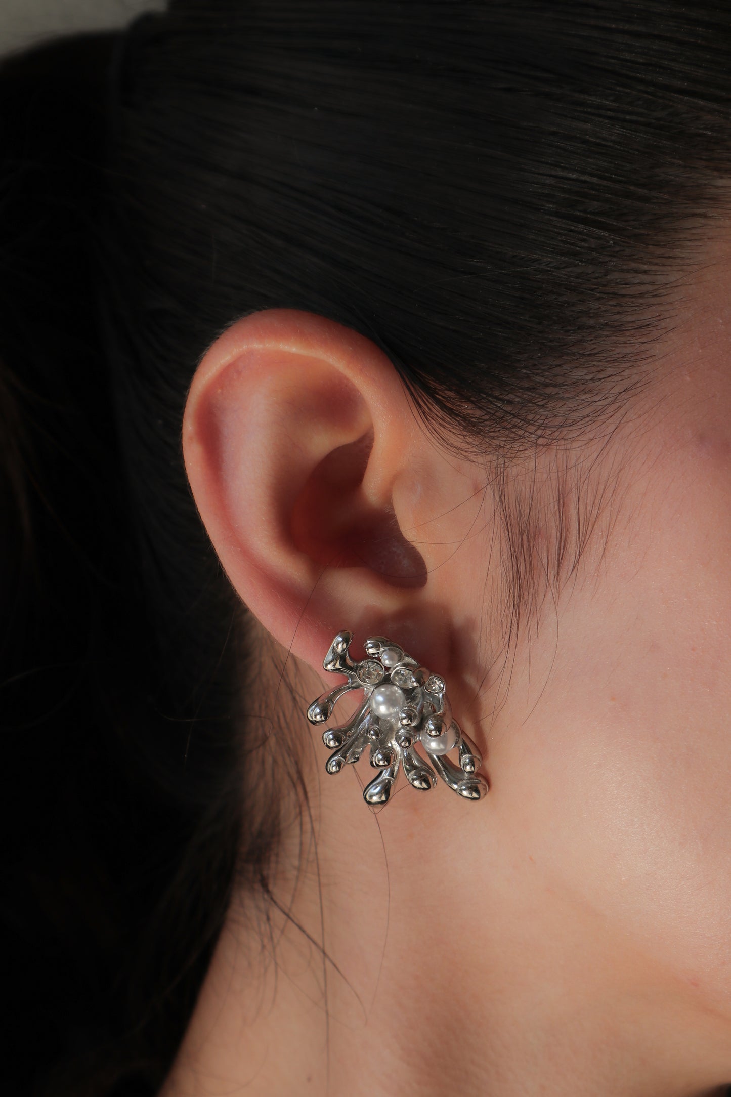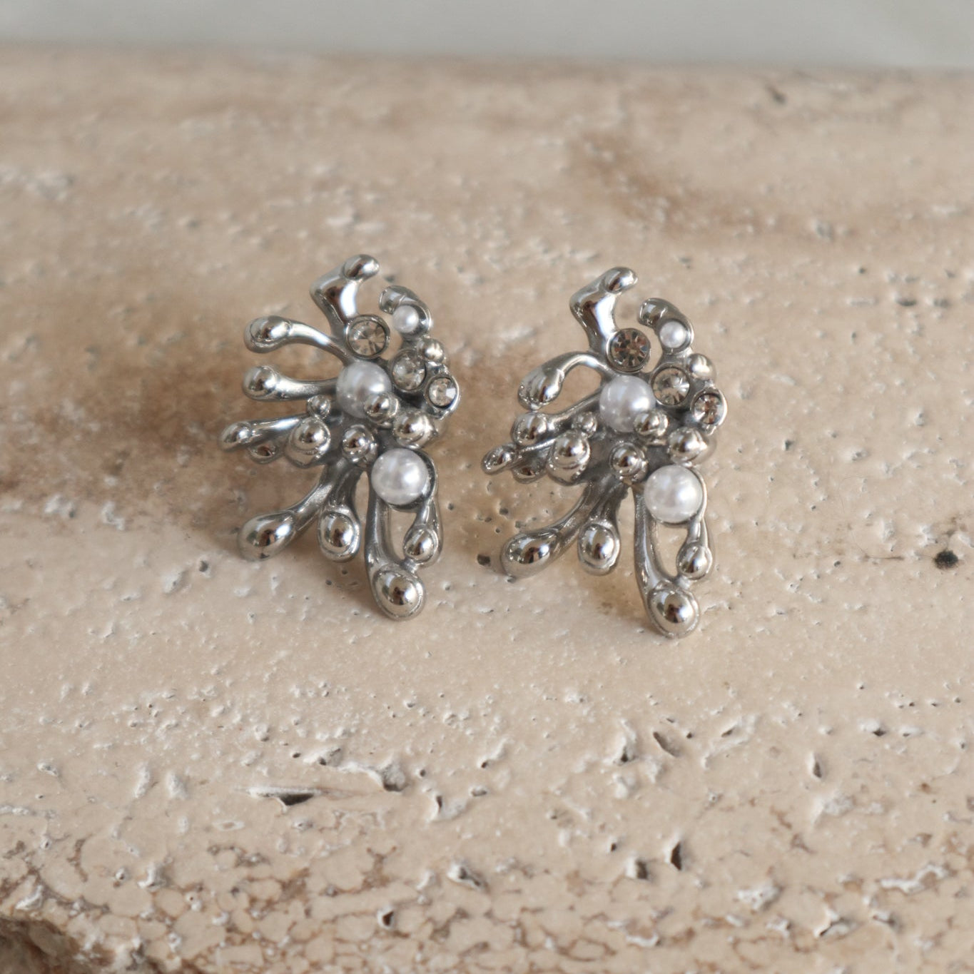 Añadir Aretes Plateados Ramas con Perlas al carrito