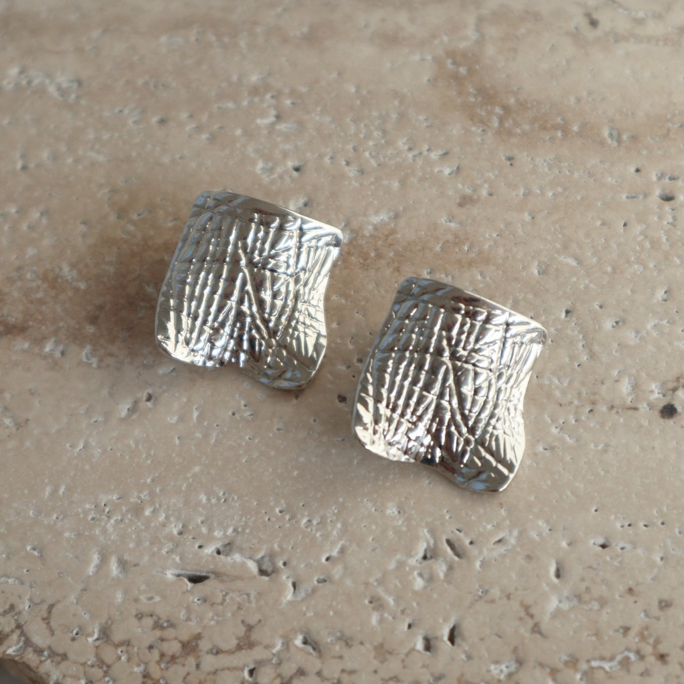 Añadir Aretes Rombo Texturizados Plateados al carrito
