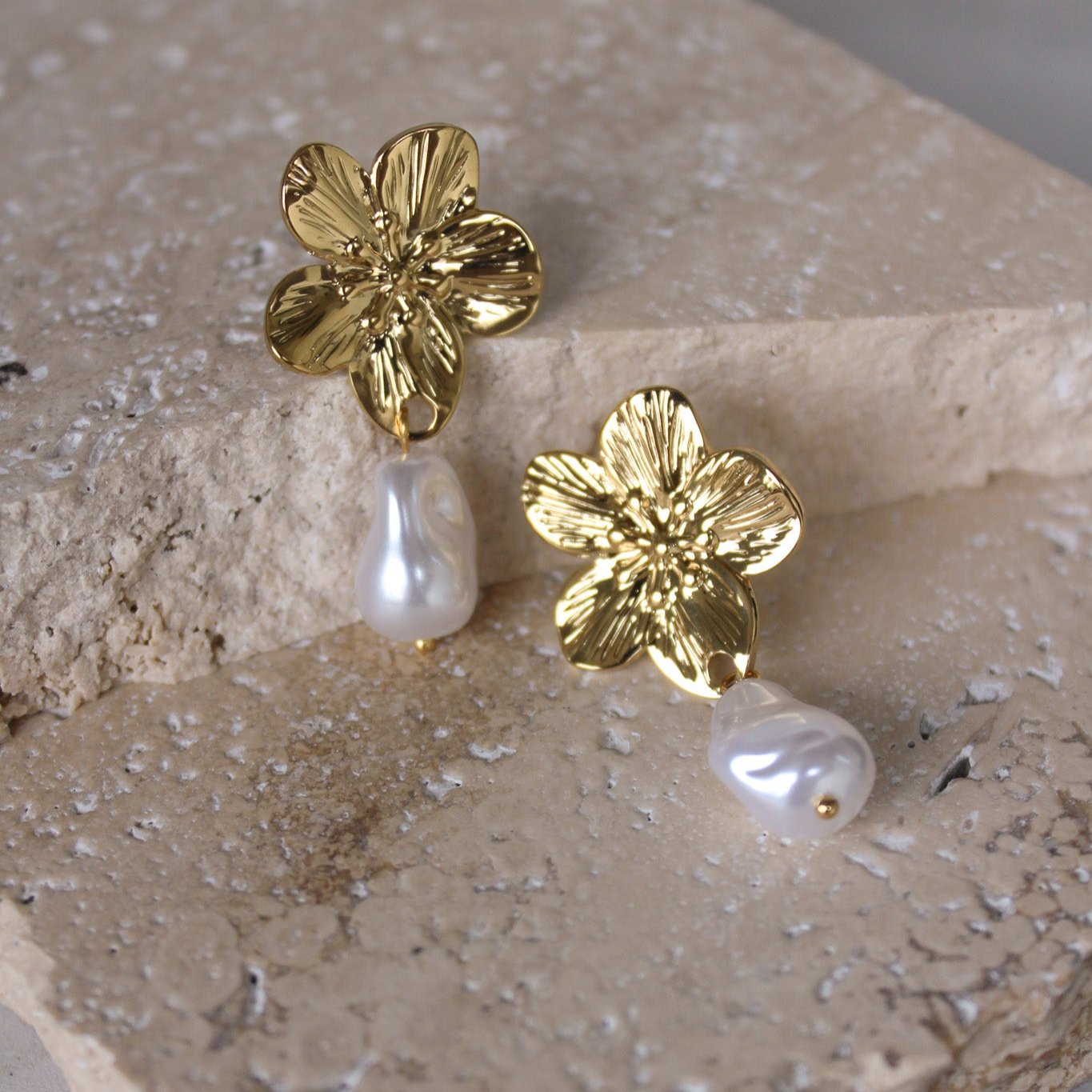 Añadir Aretes de Flor con Perla Colgante al carrito