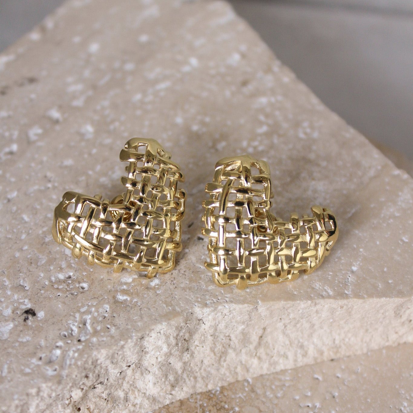 Añadir Aretes Dorados Corazón Textura Huecos al carrito