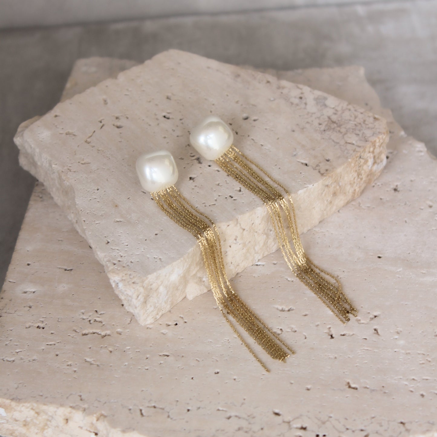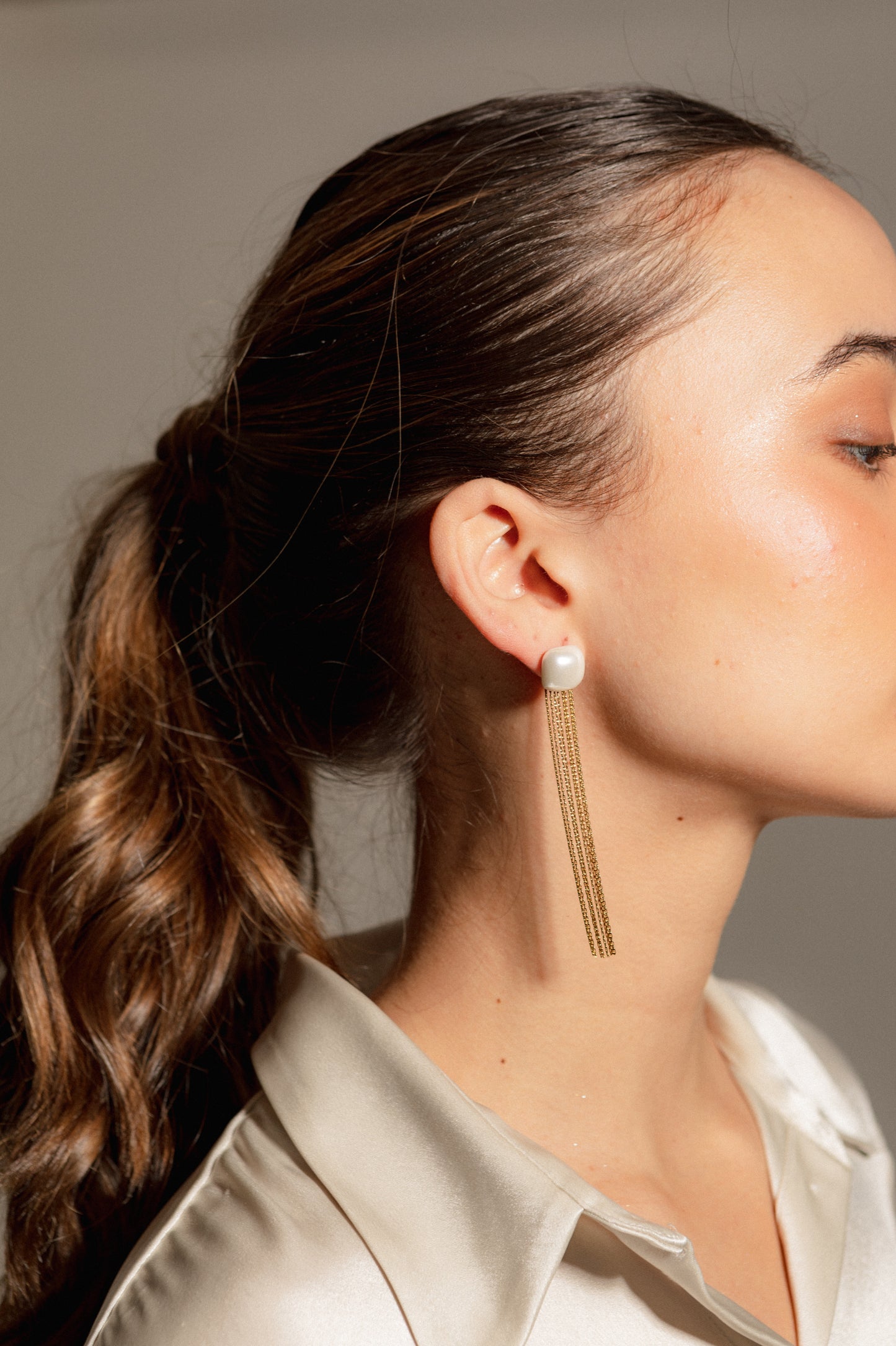 Añadir Aretes súper Largos Perla y Tiras al carrito