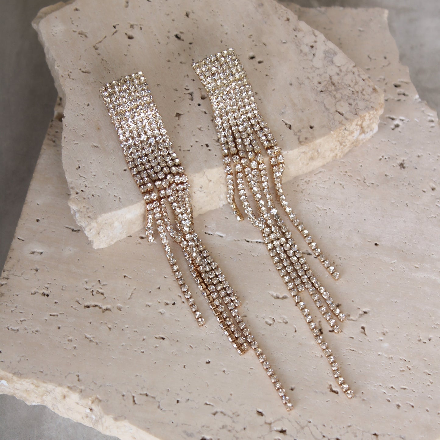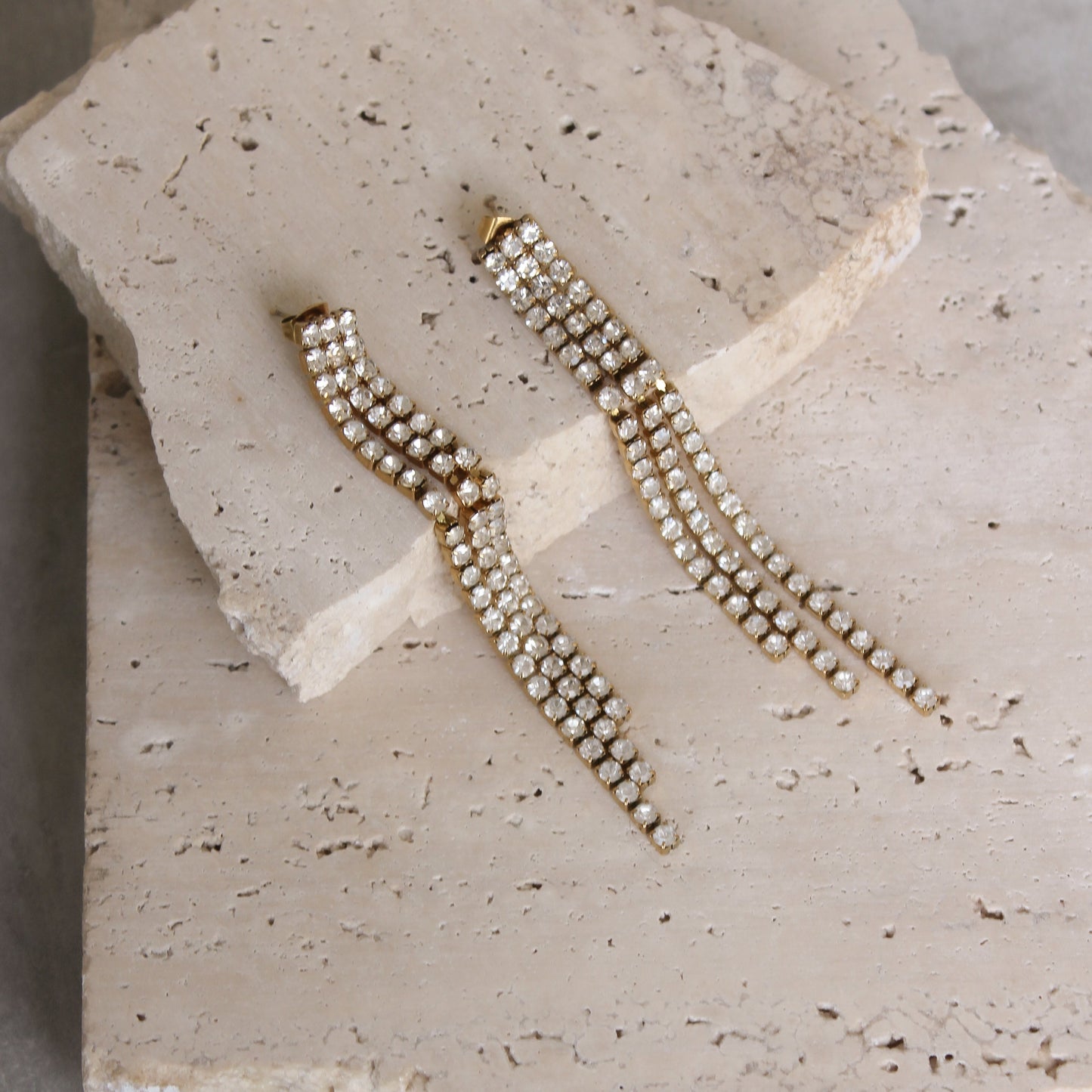 Añadir Aretes Largos Tira de Circonias y Cuentas Doradas al carrito