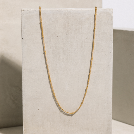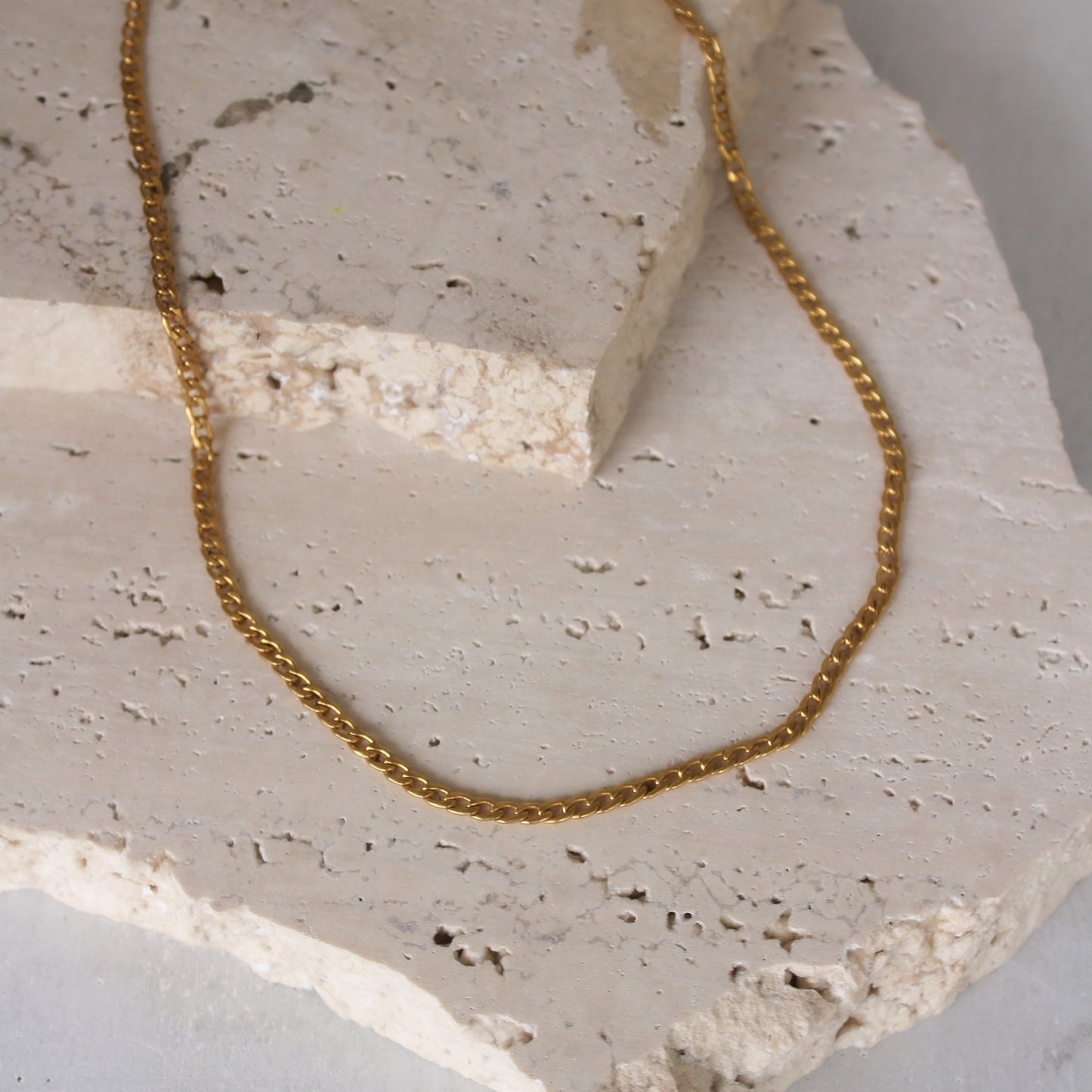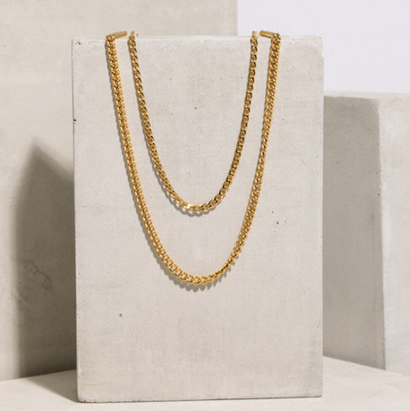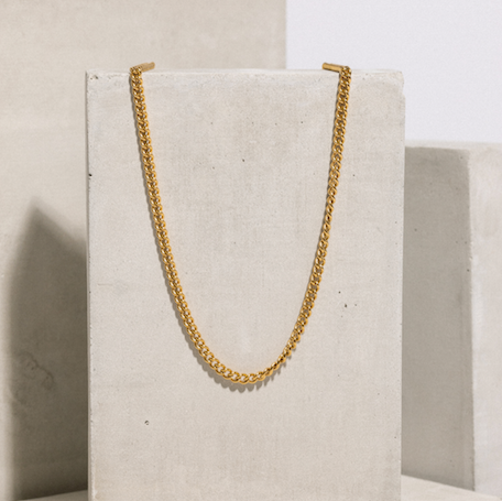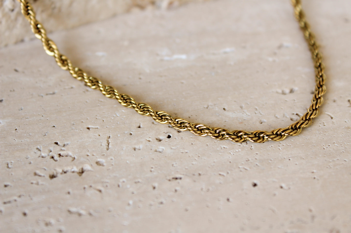 Bonita, ligera con un tono dorado bonito. Es de buena calidad, no es suuuuuper gruesa pero sí es más ancha que otras.