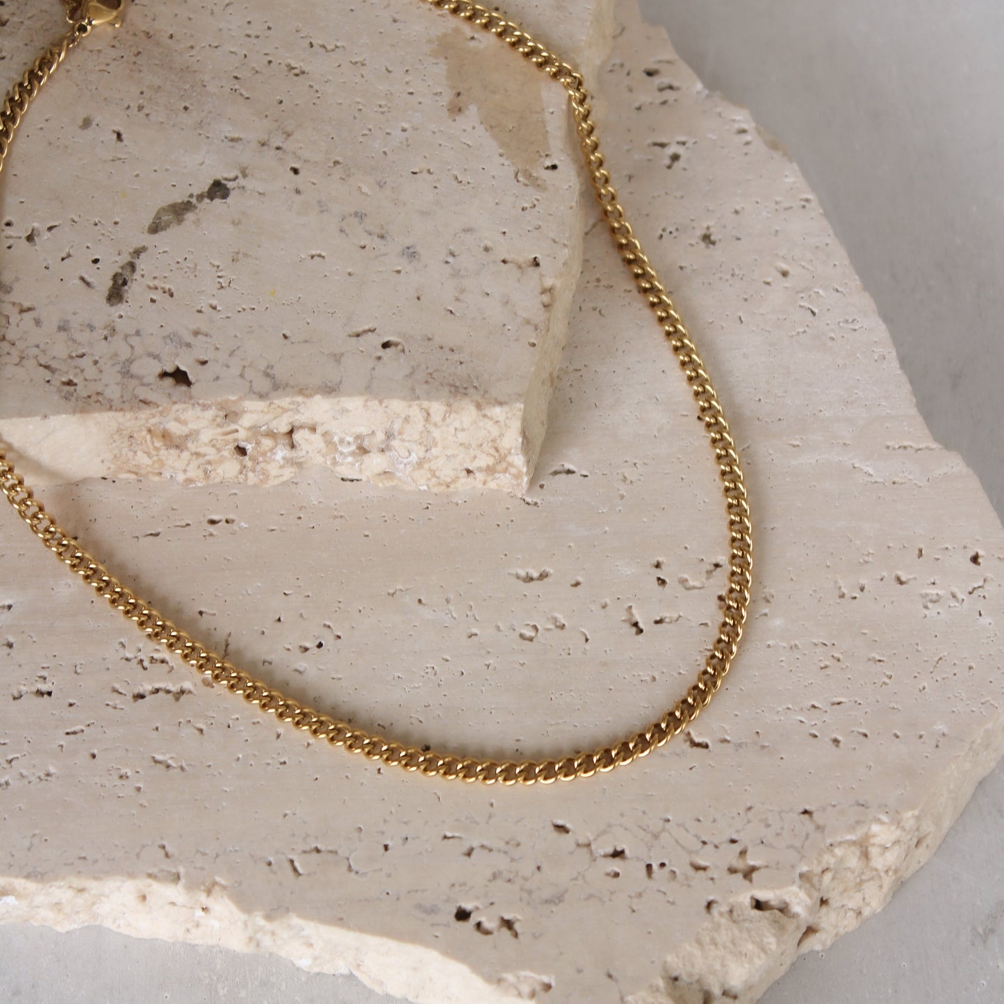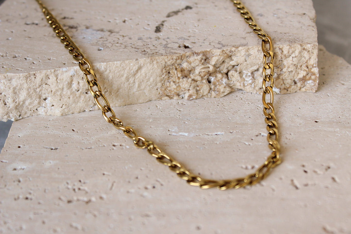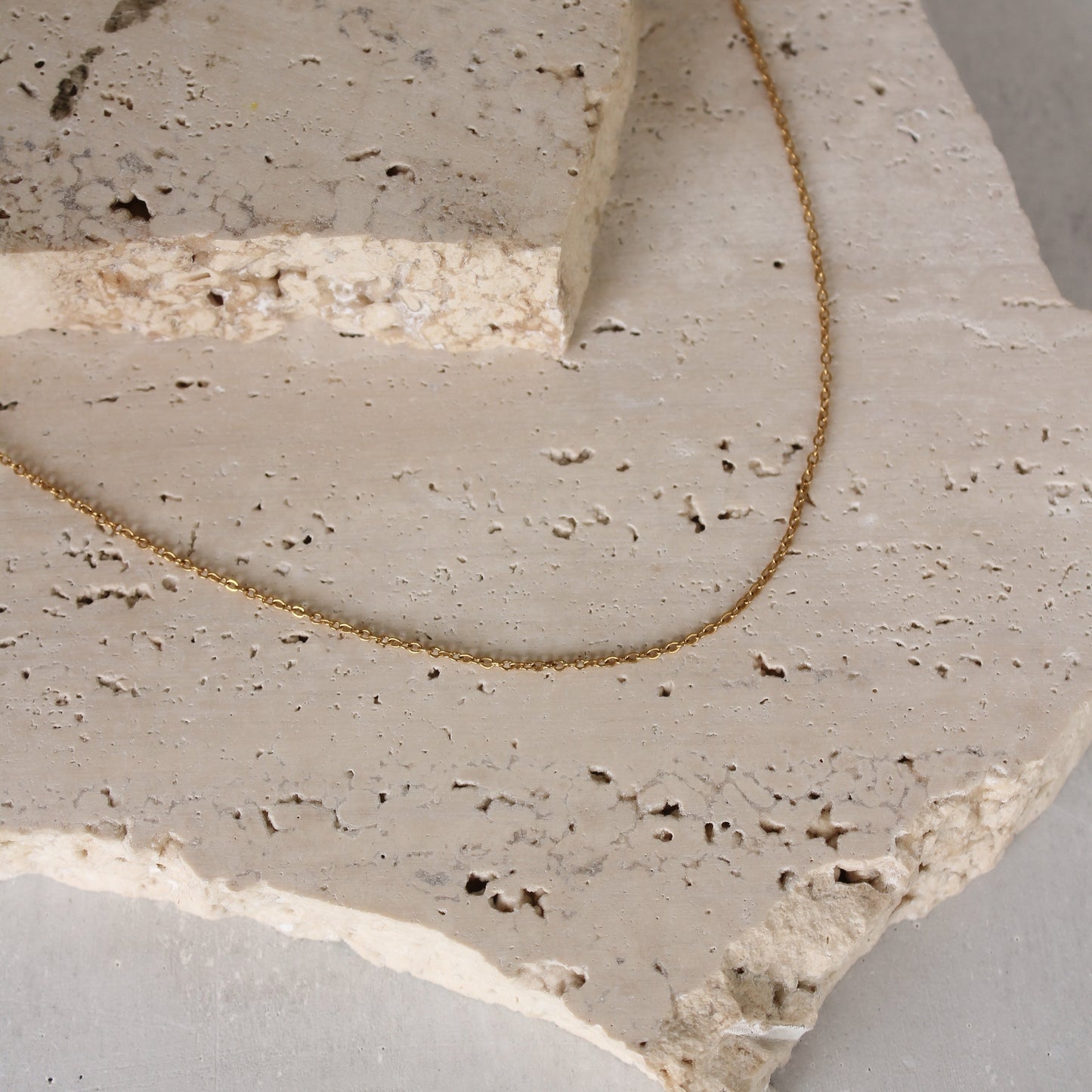 Bonita, ligera con un tono dorado bonito. Es de buena calidad, no es suuuuuper gruesa pero sí es más ancha que otras.