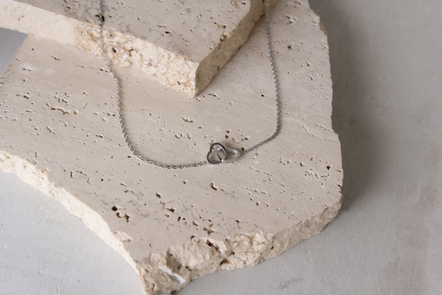 Collar Delgado Corazones Plateados Entrelazados