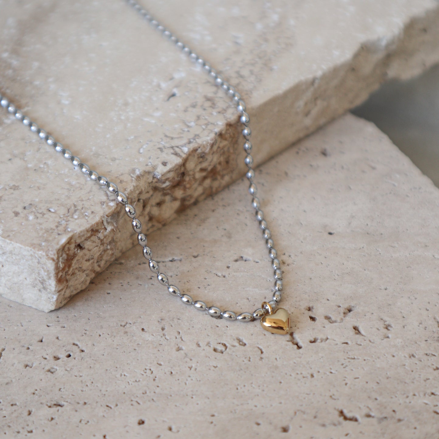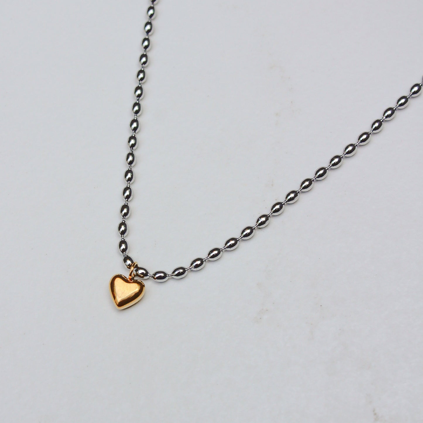 Añadir Collar Cuentas Plateadas y Colgante De Corazón Dorado al carrito