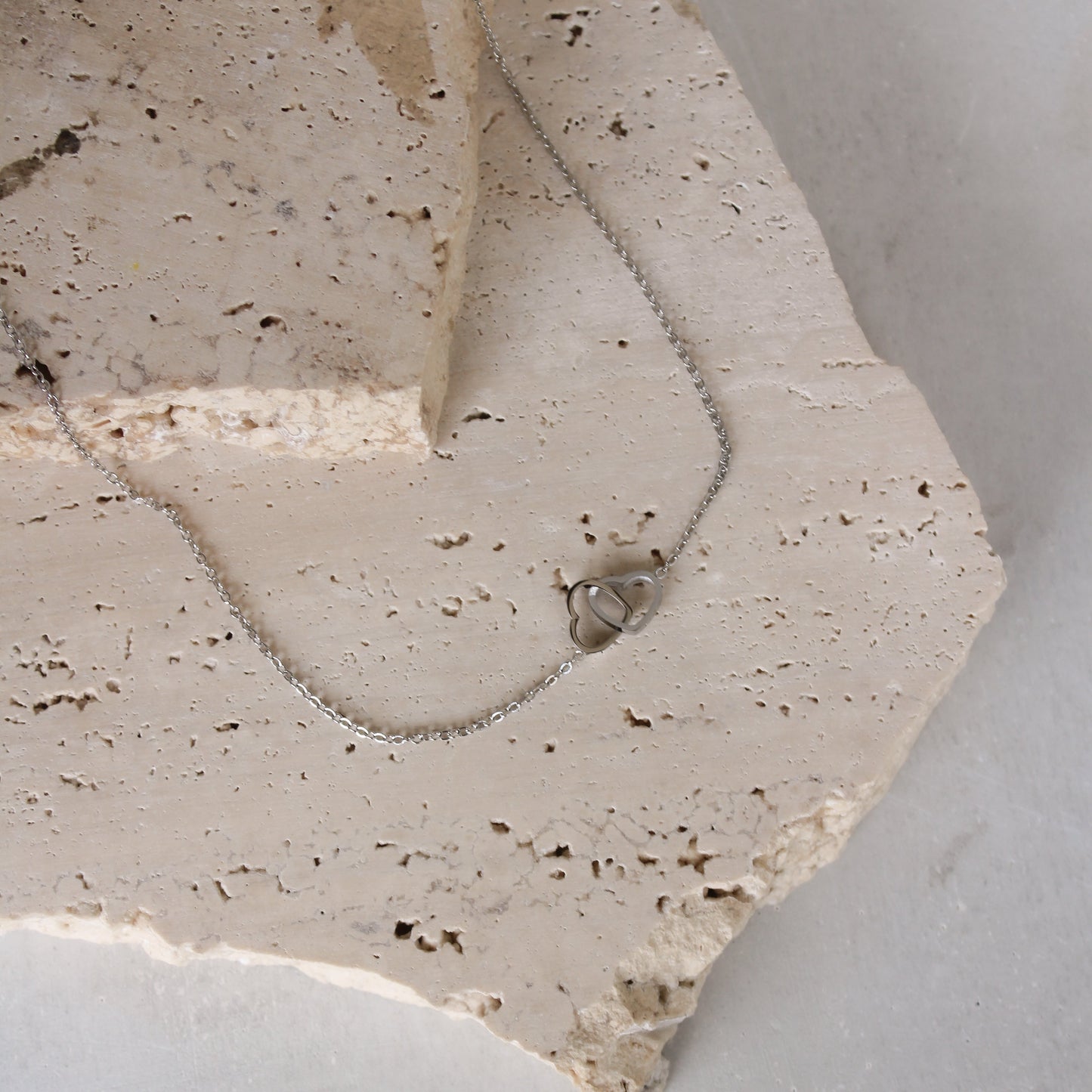 Añadir Collar Delgado Corazones Plateados Entrelazados al carrito