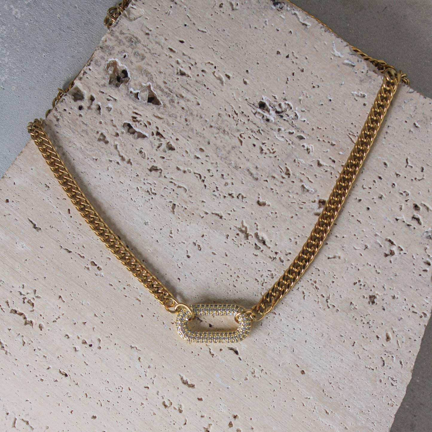 Añadir Collar Cadena Dorada Con Hebilla Circonias al carrito