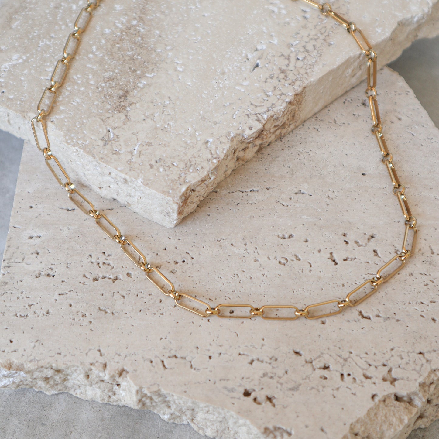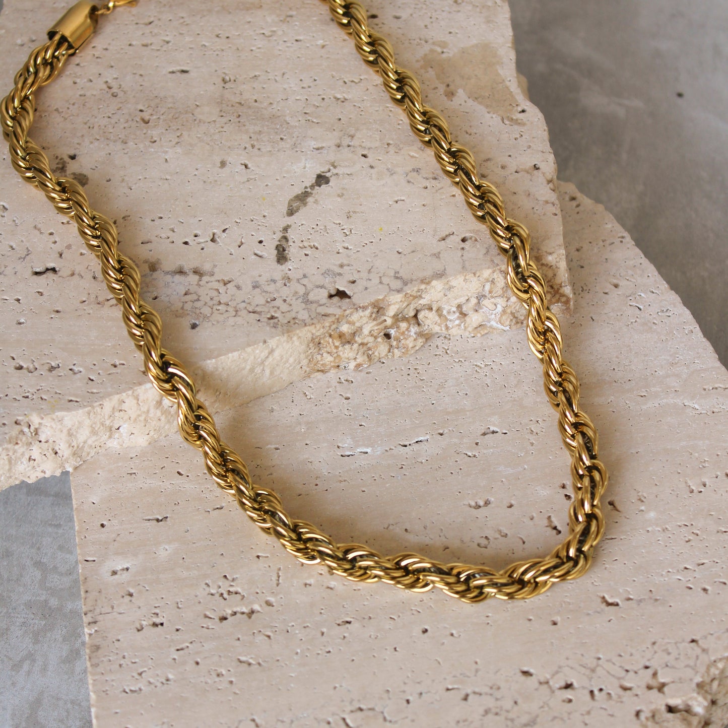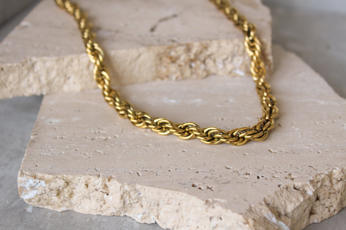 Bonita, ligera con un tono dorado bonito. Es de buena calidad, no es suuuuuper gruesa pero sí es más ancha que otras.