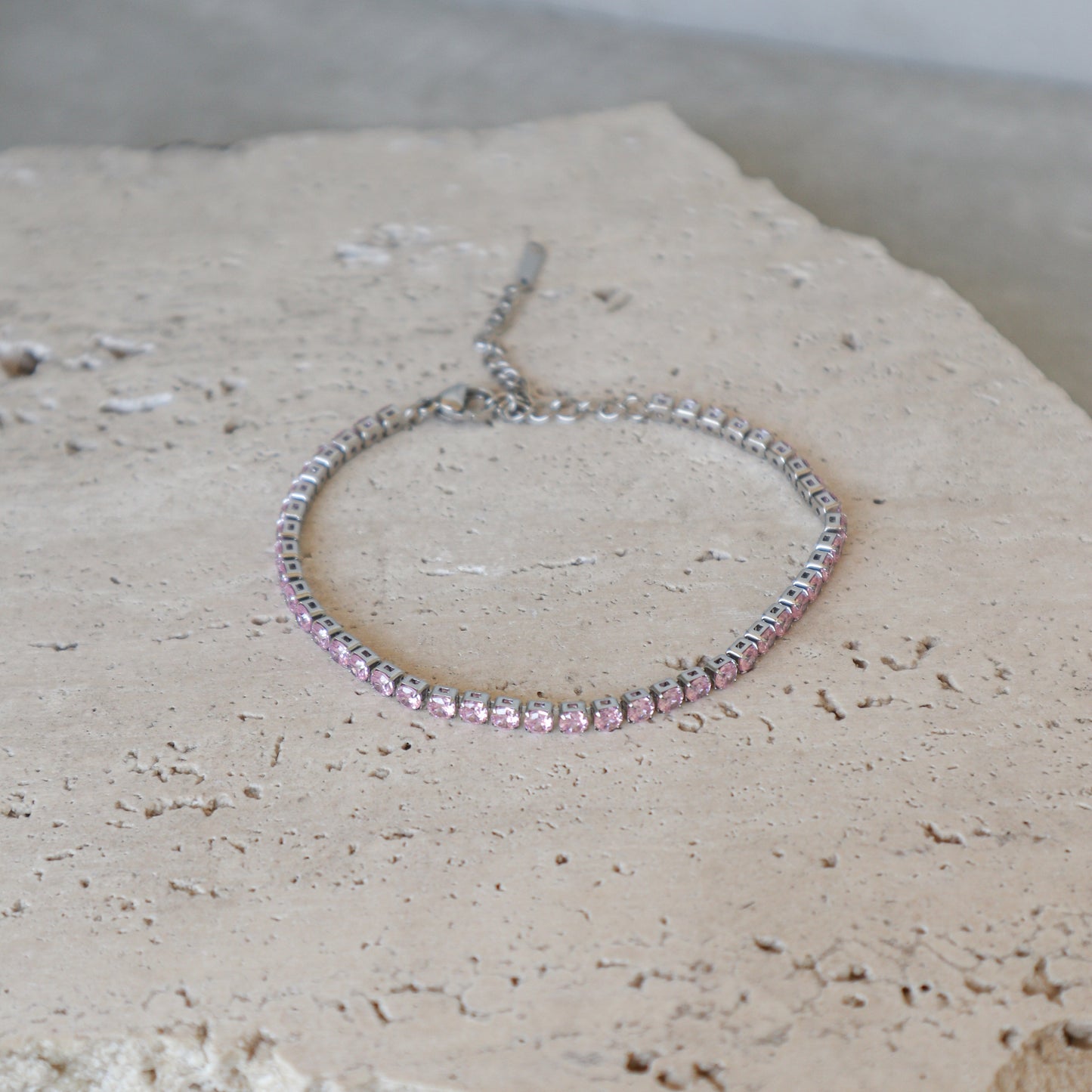 Añadir Pulsera Plateada Circonias Rosas al carrito