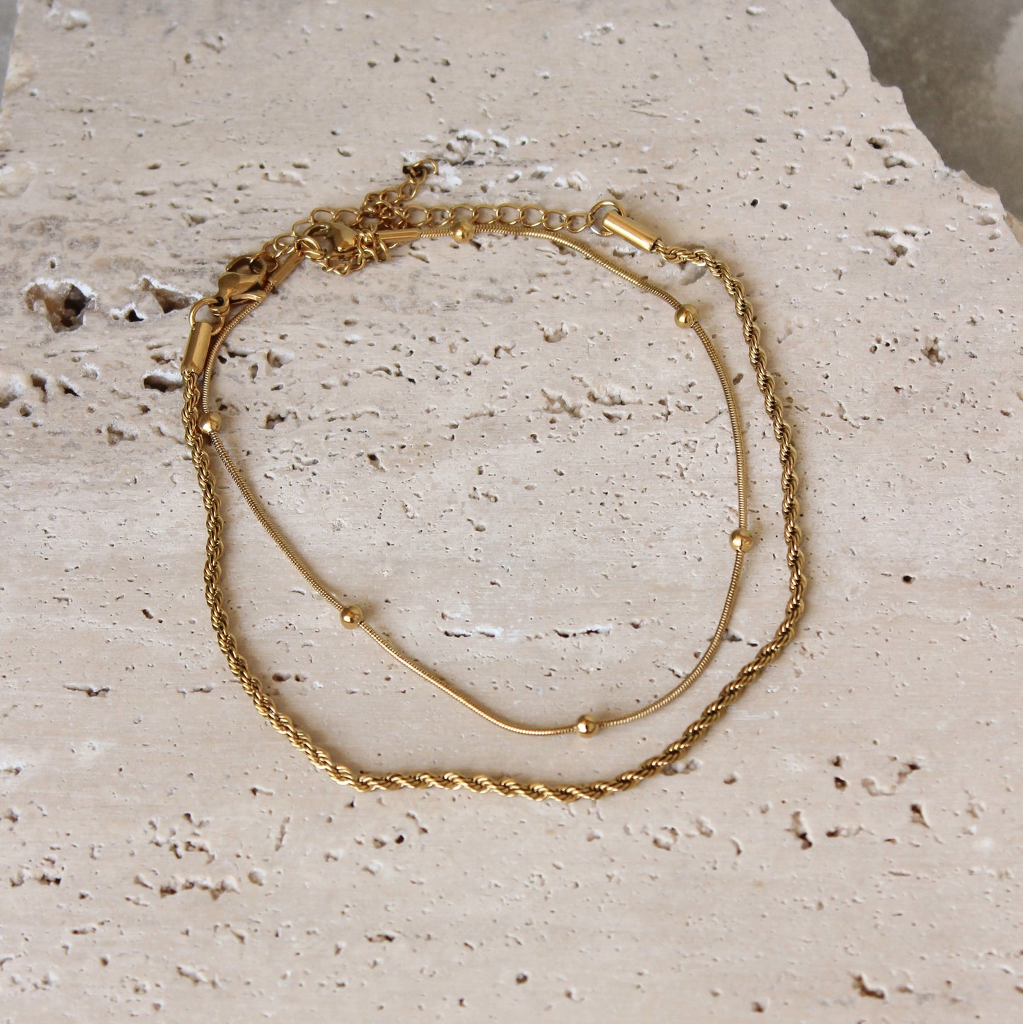 Añadir Tobillera Doble Torcida y Cuentas Doradas al carrito