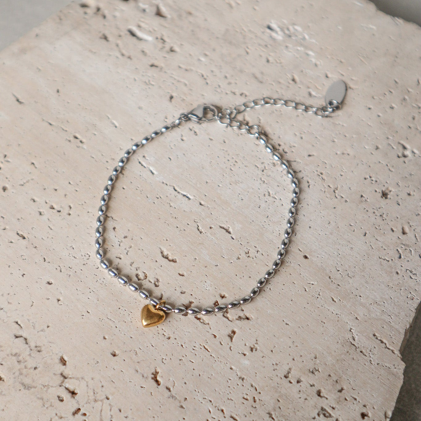 Añadir Pulsera Cuentas Plateadas y Corazón Dorado al carrito