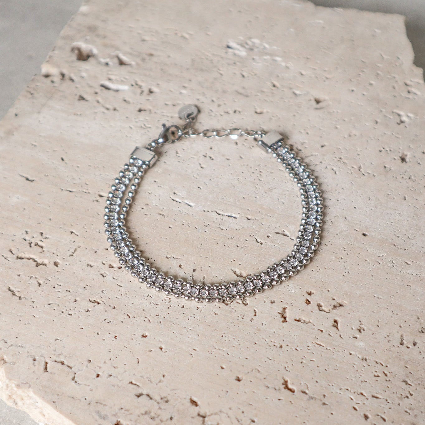 Añadir Pulsera Triple Cuentas Plateadas y Circonias al carrito