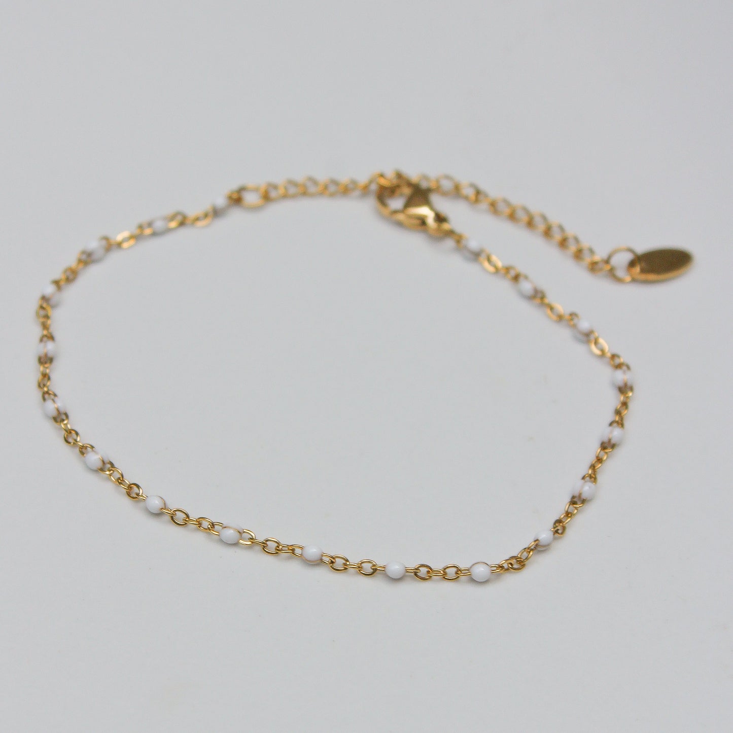 Pulsera Cadena Delicada y Cuentas Blancas